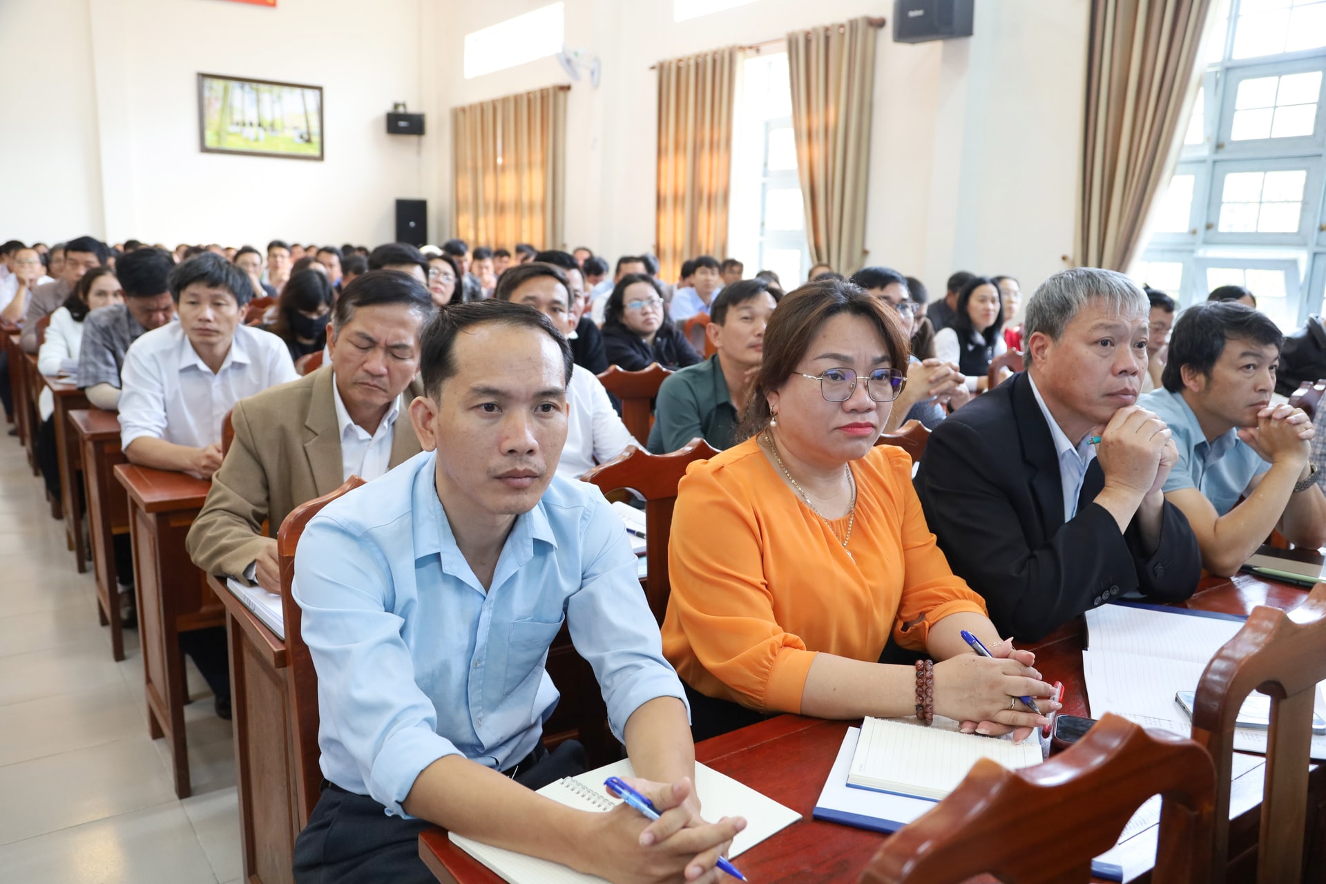 Đông đảo cán bộ quản lý, giáo viên các trường THPT, THCS và Phổ thông Dân tộc Nội trú, Trung tâm Giáo dục thường xuyên trong tỉnh tham dự