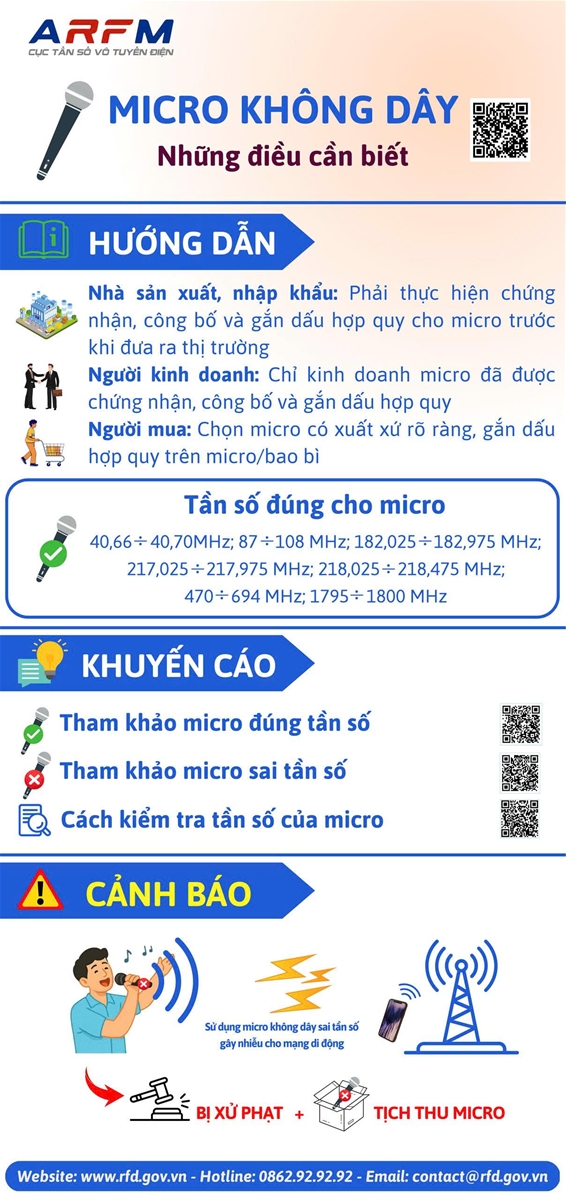 Không sản xuất, nhập khẩu, kinh doanh, sử dụng micro không dây có tần số hoạt động không đúng quy định